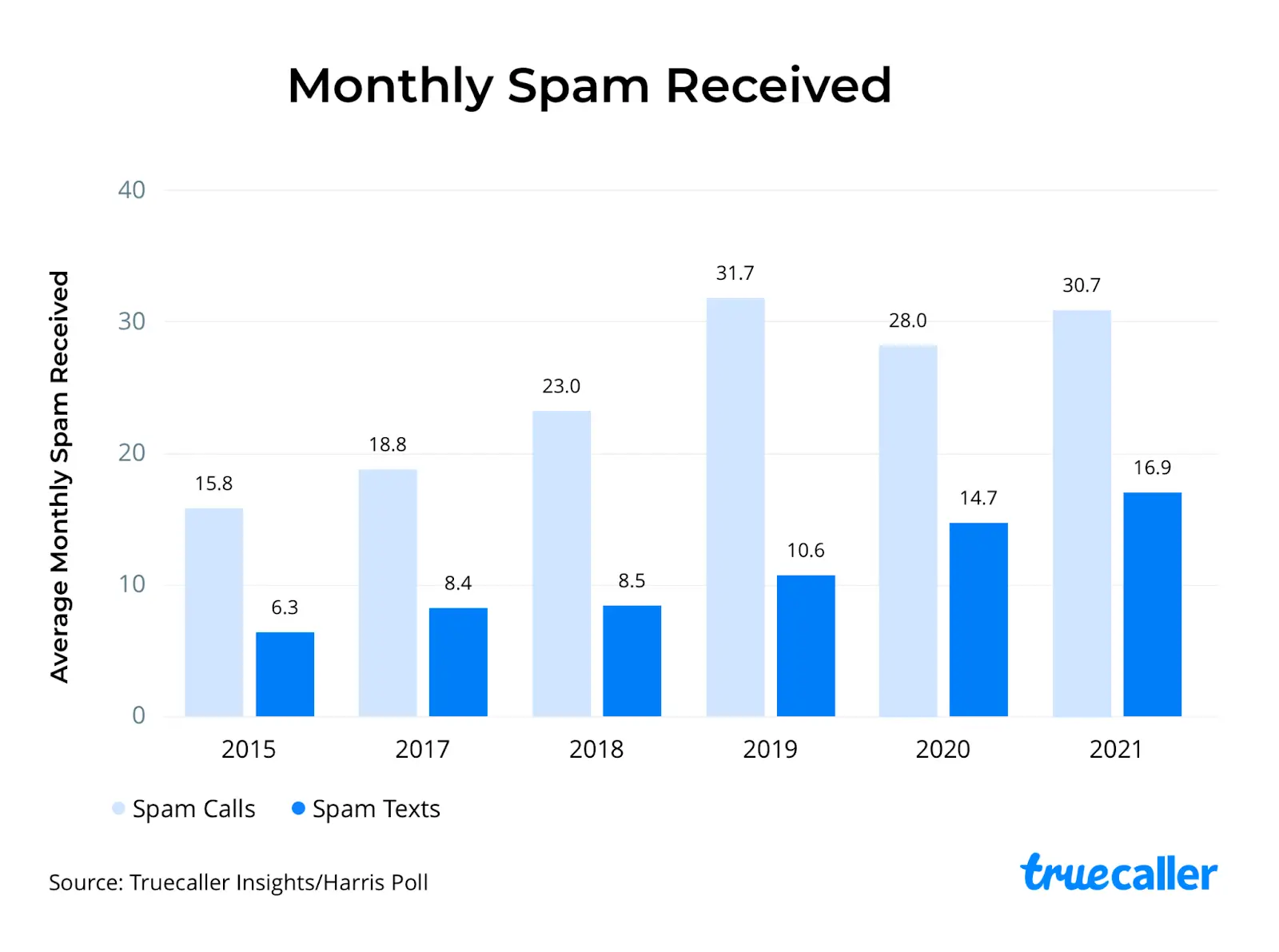 Over the past few years, spam text messages, known as smishing, have exploded across the US. As per the study, 59% of Americans receive spam texts. Americans received approximately 19.2 billion spam text messages in September 2024. Even Statista’s recent report shows that in March 2023, 45% of US adults encountered spam texts and calls daily. Customers lost around $86 million due to spam messages.
