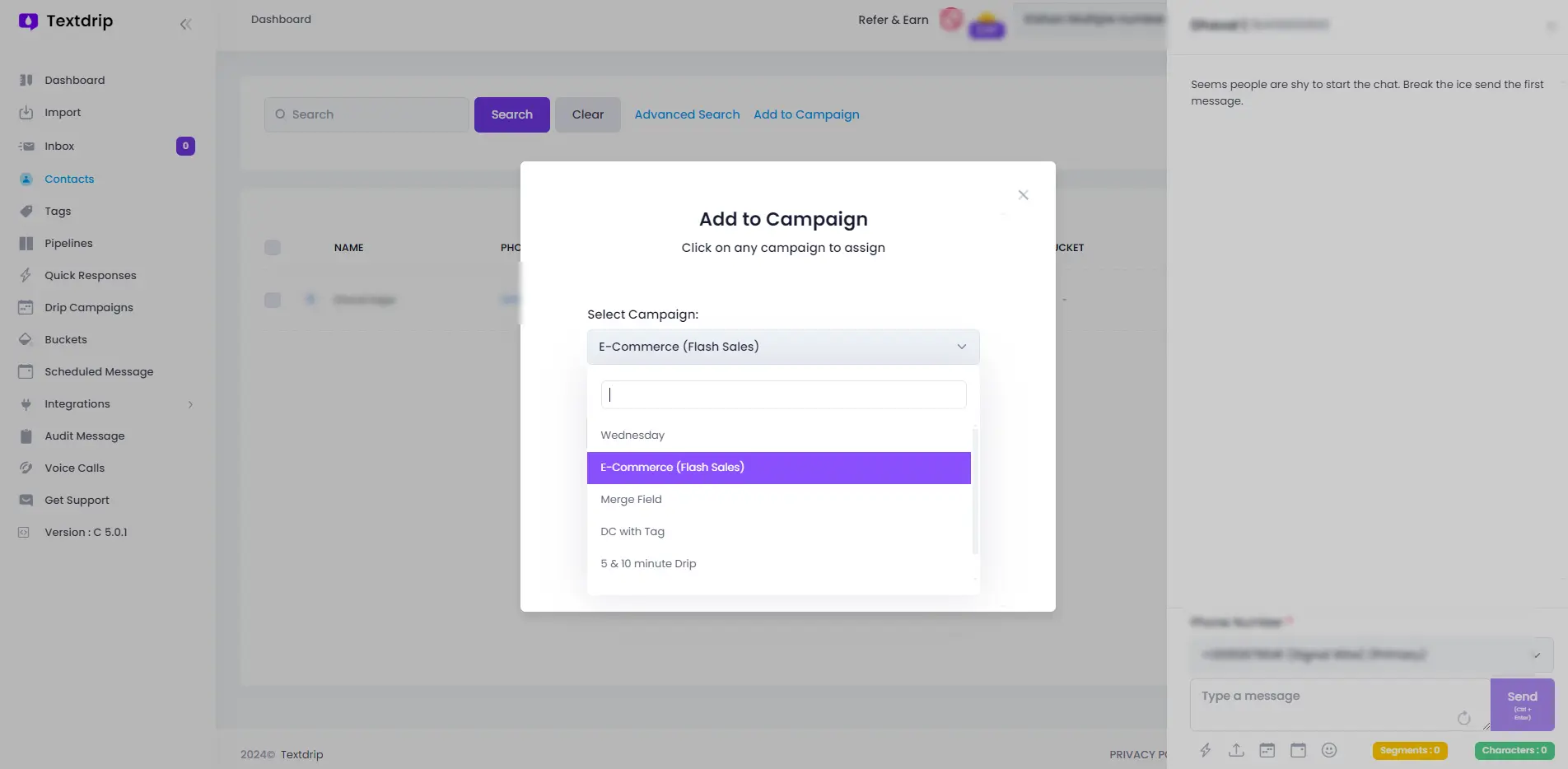 Follow the steps below to set up an SMS drip campaign using Textdrip.