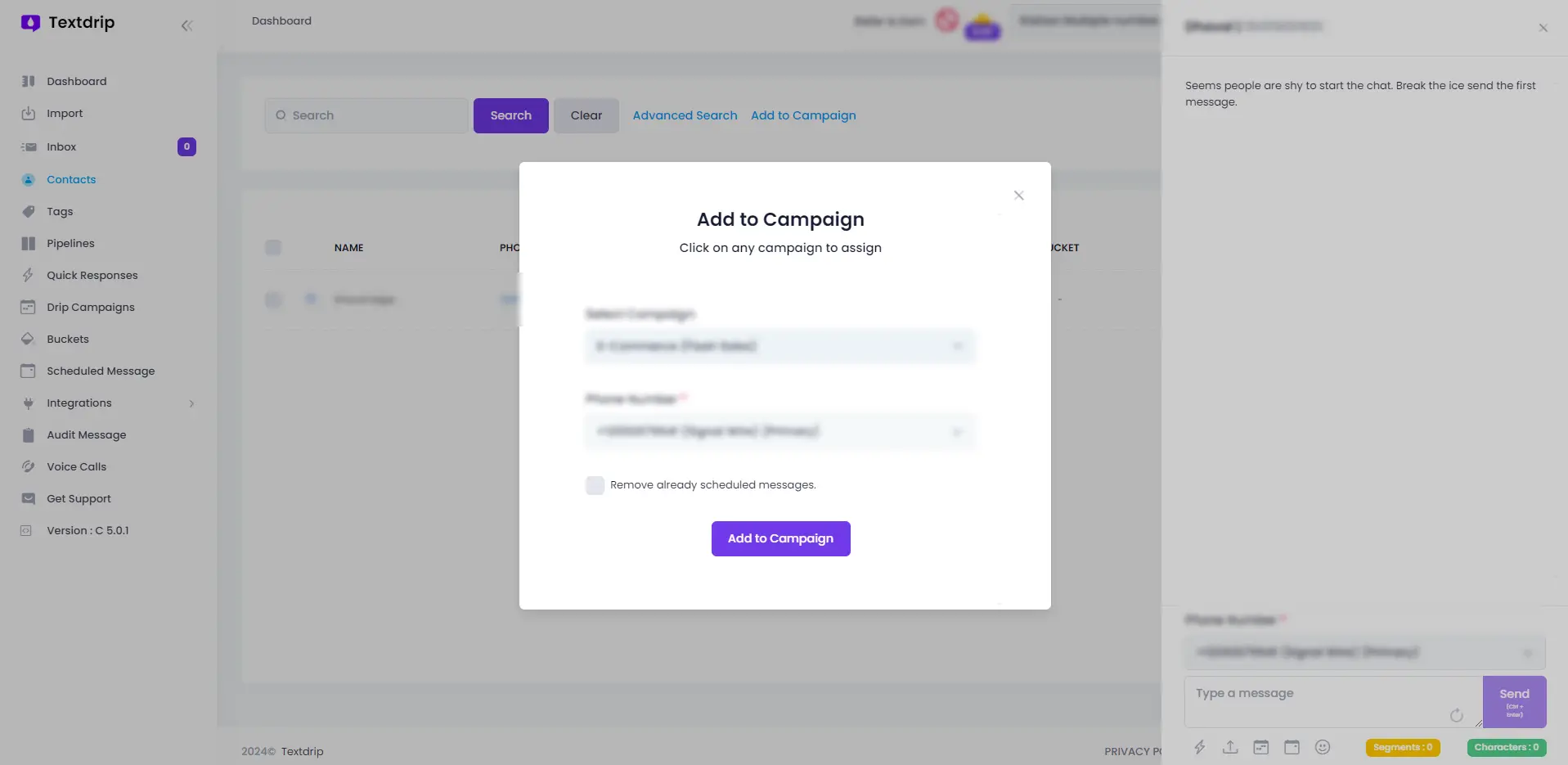 9) As you can see in the image, you need to select the campaign name and phone number here and then click on Add to Campaign.