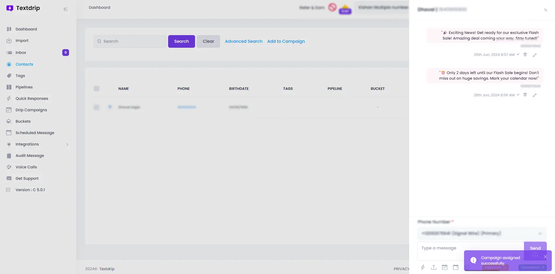 Textdrip has exclusive features like SMS automation, drip campaigns, MMS marketing, personalization, bulk texting, two-way messaging, quick responses, etc., making it the perfect tool for SMS drip campaigns. So, to boost conversion and take your business to the next level, sign up for a free trial today or book a demo. This platform can effectively help you unlock the power of SMS drip campaigning.