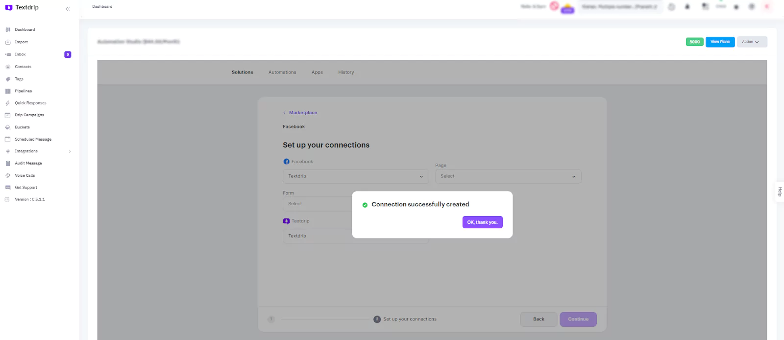 Your Facebook-Textdrip integration is now complete! You’re all set to start capturing leads and sending personalized SMS campaigns automatically.