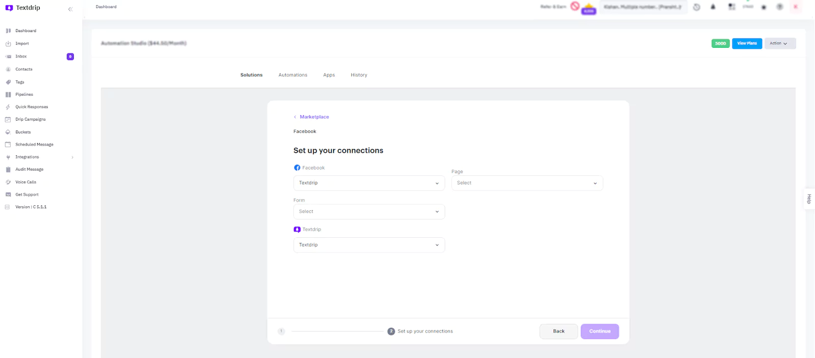 You’ll now be able to choose the specific Facebook Pages and Forms where your customers interact. These are the points from which leads will be captured and personalized SMS messages will be sent automatically via Textdrip.