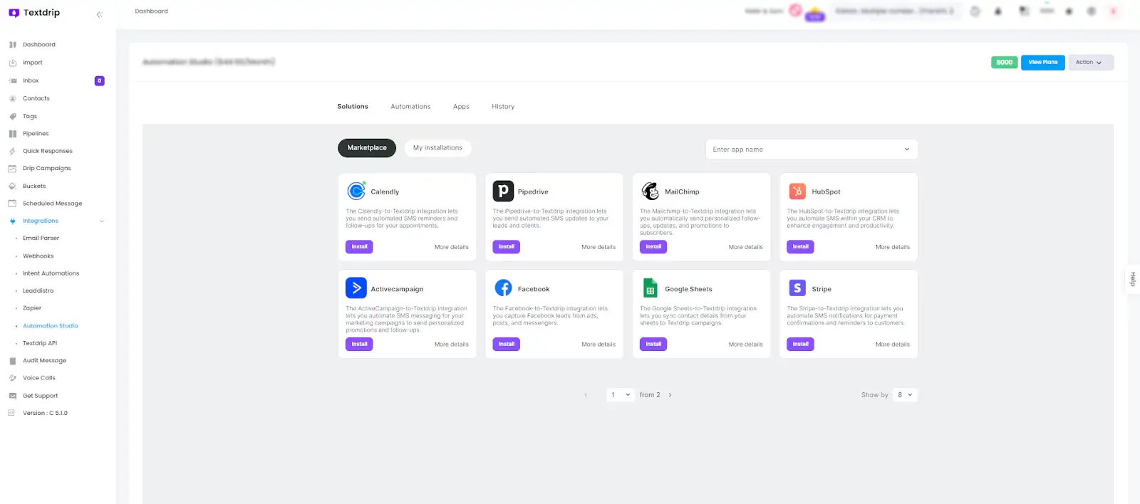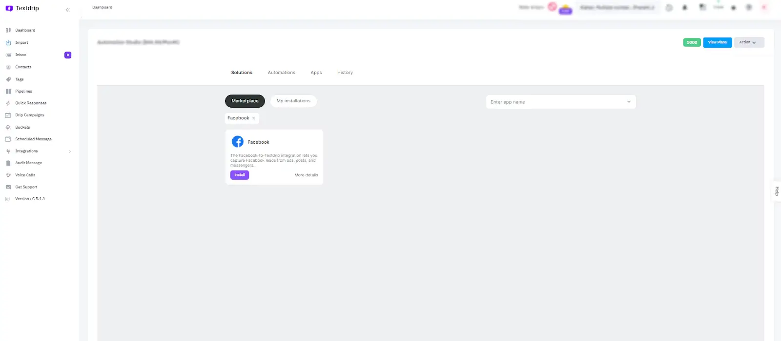 In the Integration section, click on the submenu labeled “Automation Studio”. This is where you’ll build your workflows to capture leads from Facebook and automate SMS follow-ups.