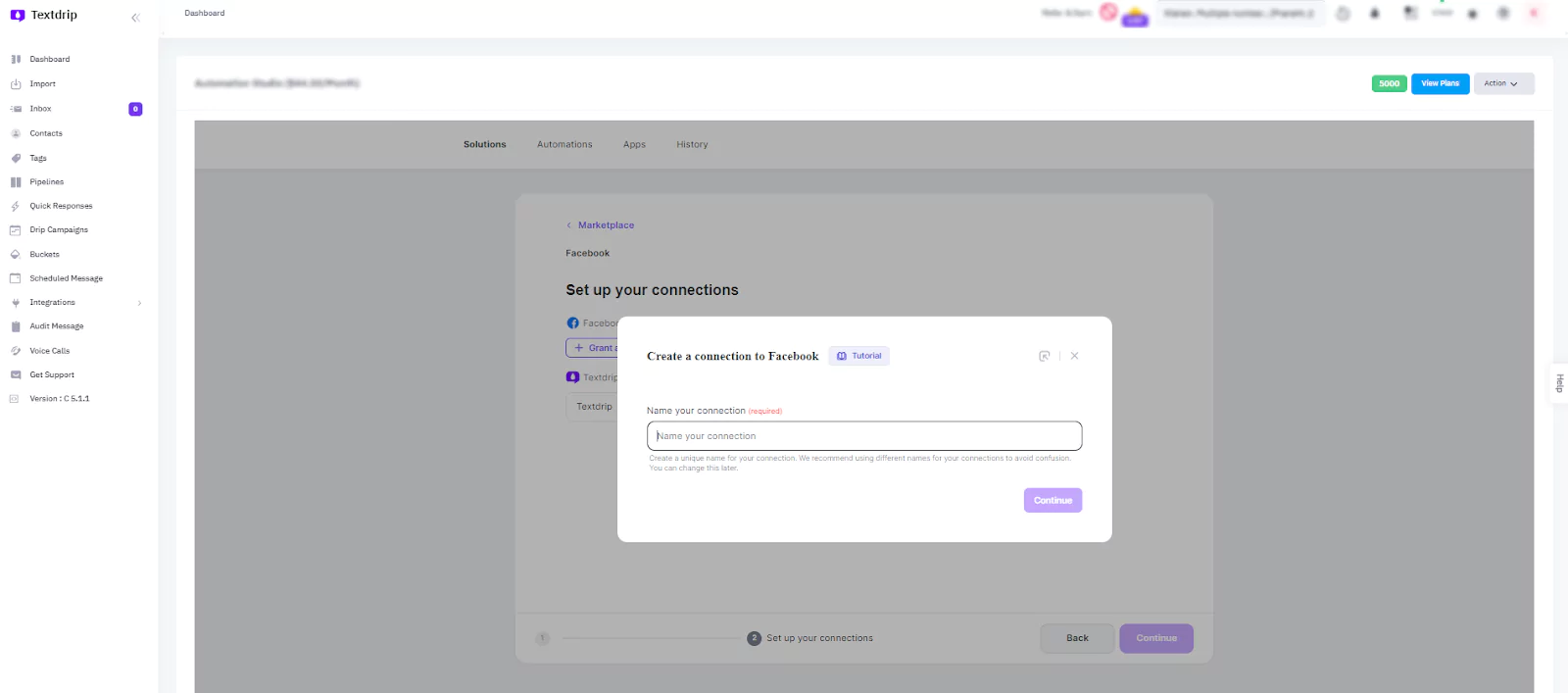 After clicking “Grant Access” a pop-up window will appear asking you to provide a unique name for your Facebook-Textdrip connection. This step is helpful to avoid confusion if you plan to integrate multiple Facebook accounts or campaigns in the future.